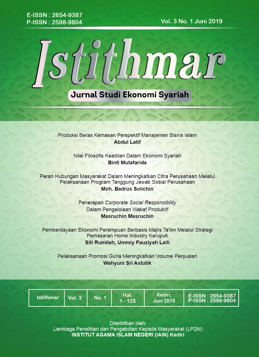 Istithmar : Jurnal Studi Ekonomi Syariah, Publisher: Program Studi Ekonomi Syariah Fakultas Ekonomi dan Bisnis Islam UIN Syekh Wasil Kediri